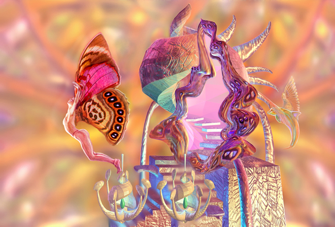 The painting featured on this page is called Cocoon and is one of many beautiful creations by Jean-Luc Bozzoli.  Even more can be seen at www.eyewithin.com