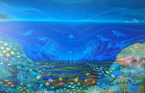 “This is the most ethereal painting and it has to be seen to be believed. Vincent is one of my favourite artists on the Cairns art scene because his work is totally unique. This wonderful interpretation of the reef is stylized on a grand scale. Vincent’s use of colour is as superb as his vibrant colours which blend together seamlessly. Since I have lived in Cairns I have seen many paintings of the reef but this one is the best so far.”